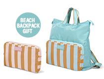 IN REGALO CON IL KIT SUNCARE, L’ESCLUSIVO ZAINO DA SPIAGGIA IN MATERIALE TECNICO.